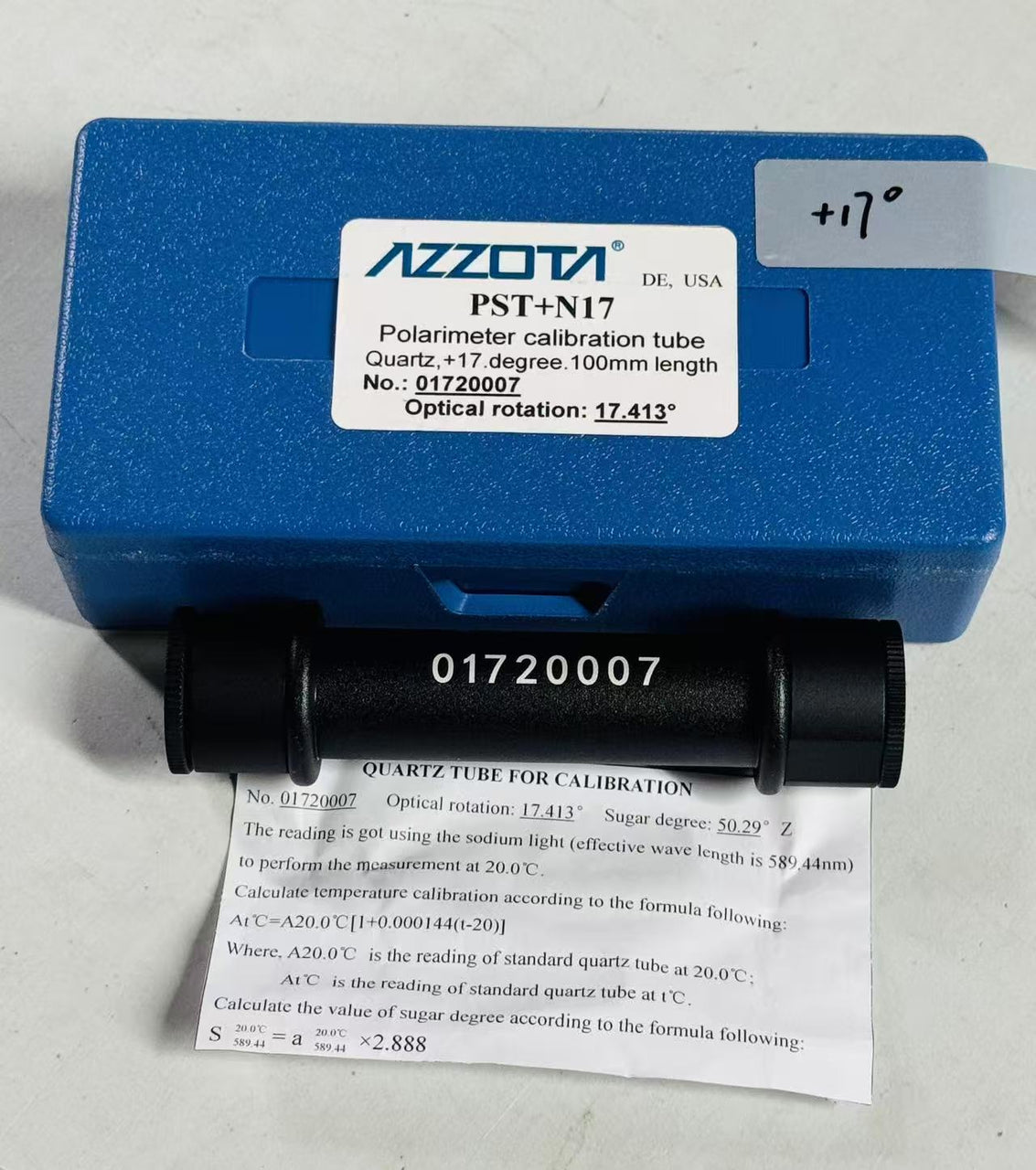 Azzota® Polarimeter Calibration tube, Optical rotation: +17° or -17°